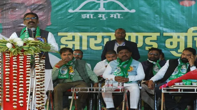 धनबाद में झारखंड मुक्ति मोर्चा (झामुमो) के 54वें स्थापना दिवस समारोह के मंच से मुख्यमंत्री और पार्टी के केंद्रीय अध्यक्ष
